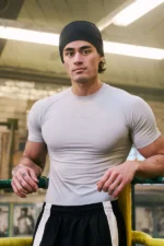 DISEÑO: Clásica camiseta de compresión diseñada como una camiseta ajustada para alto rendimiento. Diseñado para contornear la parte superior del cuerpo con una silueta atlética y limpia. Presenta un escote estructurado, construcción suave y un marcado pechonero minimalista de YoungLA.