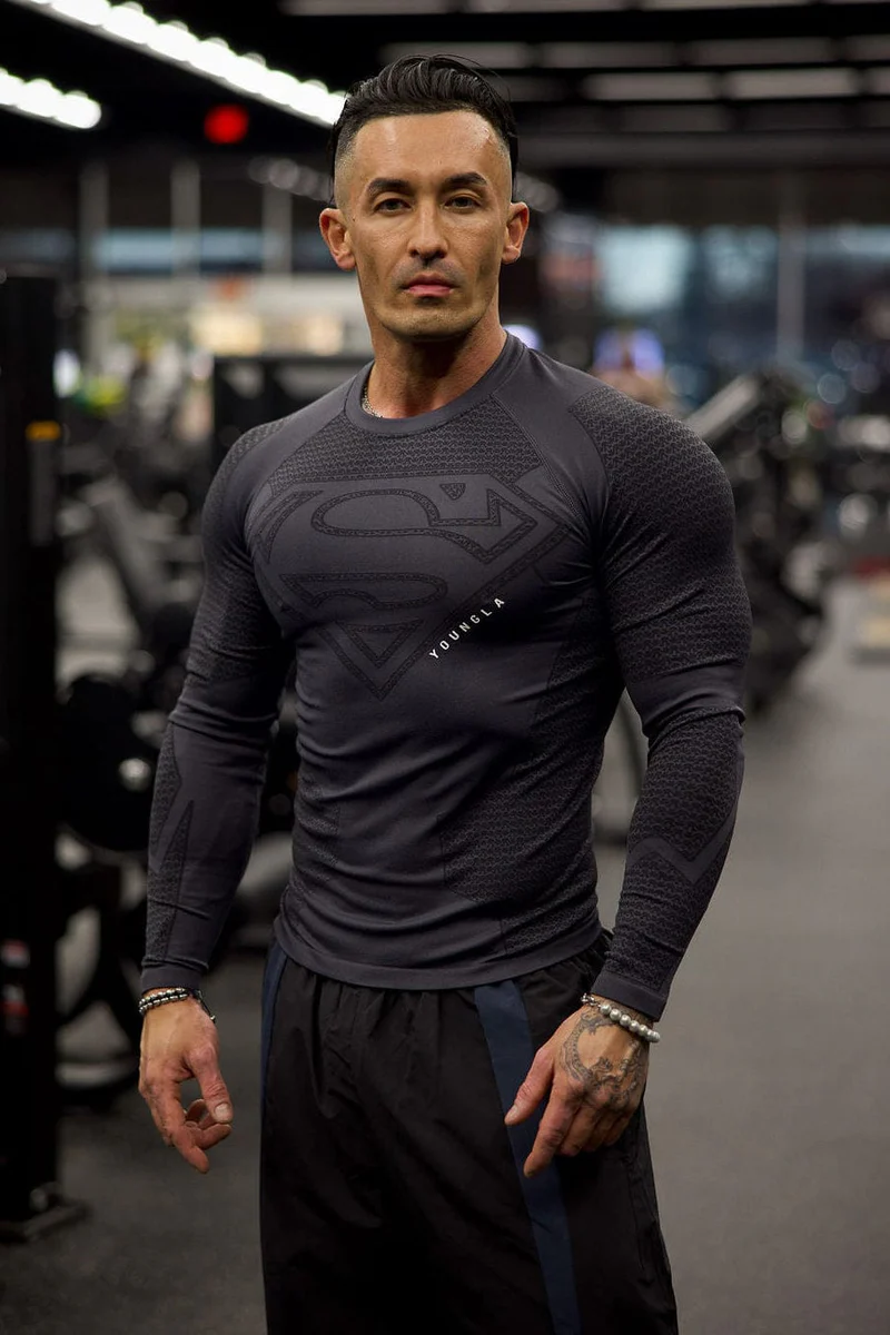 DISEÑO: Top de compresión de manga larga diseñado para moldear la parte superior del cuerpo con una sensación de segunda piel. Cuenta con mangas largas para mayor cobertura, paneles esculpidos para un look estructurado y un llamativo gráfico de Superman en el pecho, como parte de la colaboración oficial de YoungLA con Superman y DC Comics.
